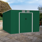 Lotus Hestia Pent Metal Shed Including Foundation Kit – 9 x 8 Dark Green