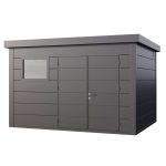 Add spacious storage in a sleek package with the Eleganto Plus metal storage building from Telluria. A premium metal shed, this modern building provides roomy interior to store garden equipment, furniture, or even indoor items thanks to its in-built insulation. Thanks to its steel exterior, the Eleganto Plus shrugs off rain and wind and needs only a simple clean to keep it in great shape.