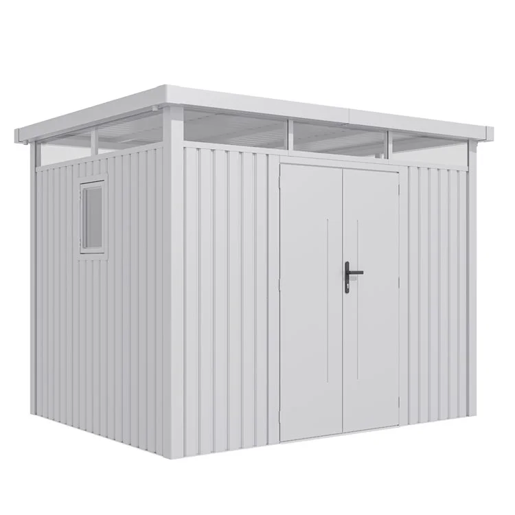 The Minos fits the archetype of a modern metal shed that keeps your possessions secure while being easy on the eye. The white finish, pent…