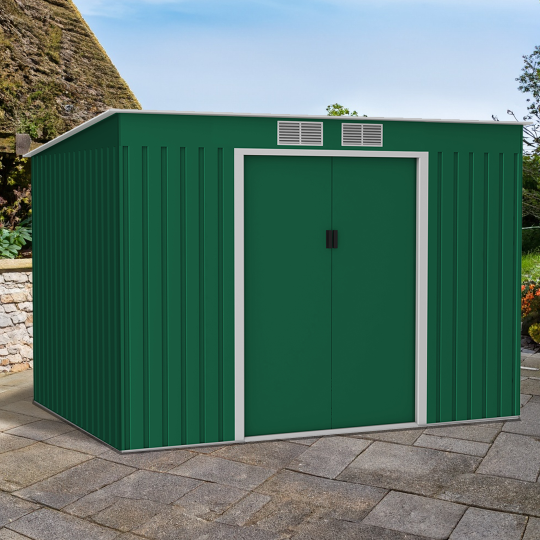 Globel 10x8ft Apex Metal Garden Shed – Green