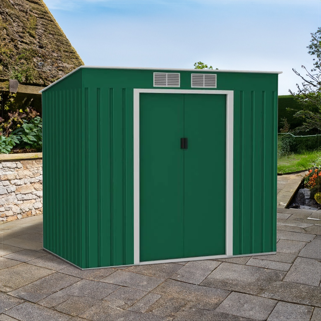 Globel 5x3ft Pent Metal Garden Shed – Green