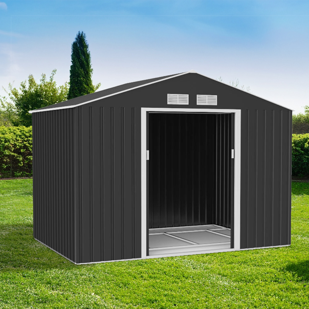 Globel 10x10ft Apex Metal Garden Shed – Grey