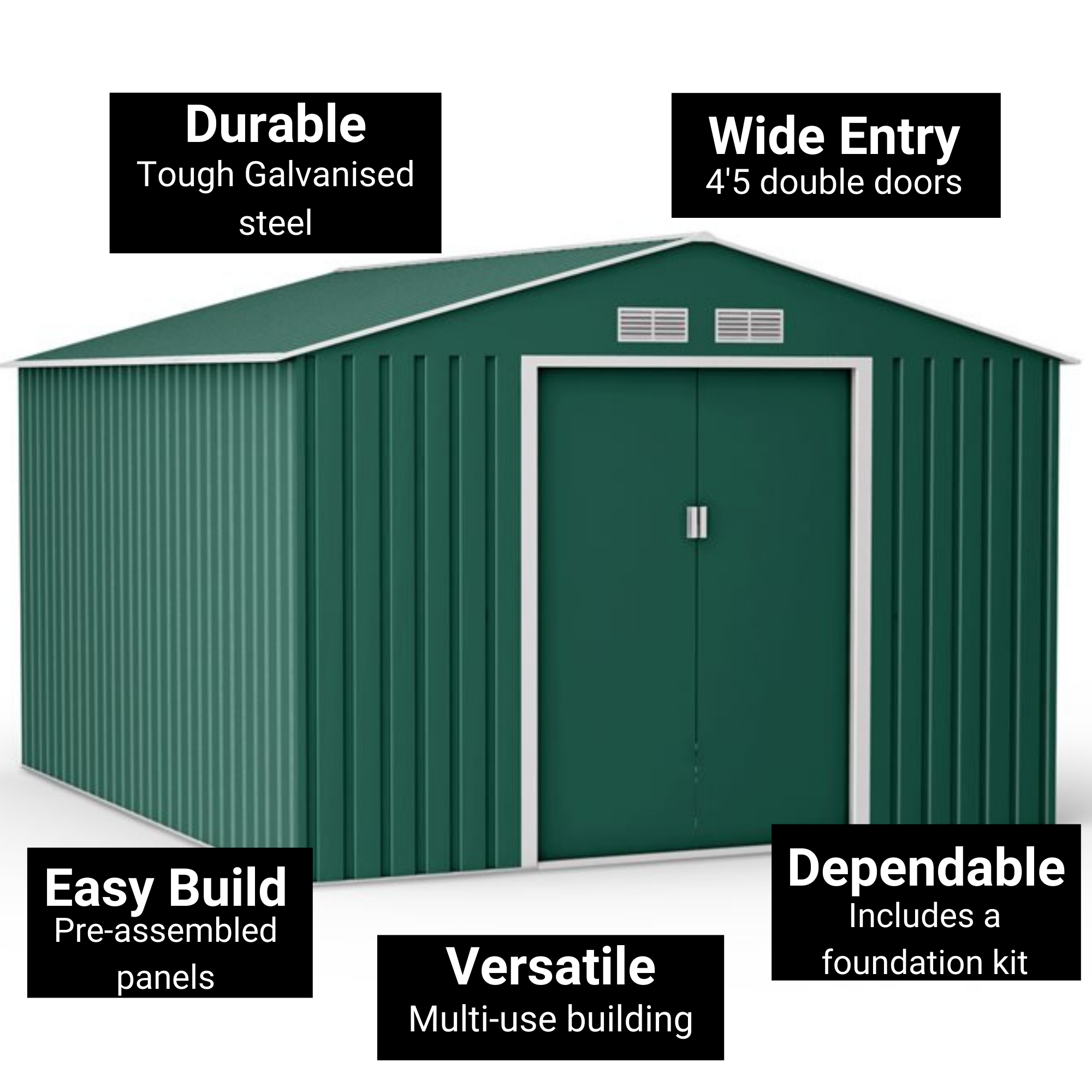 Globel 10x12ft Apex Metal Garden Shed – Green